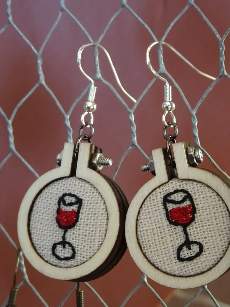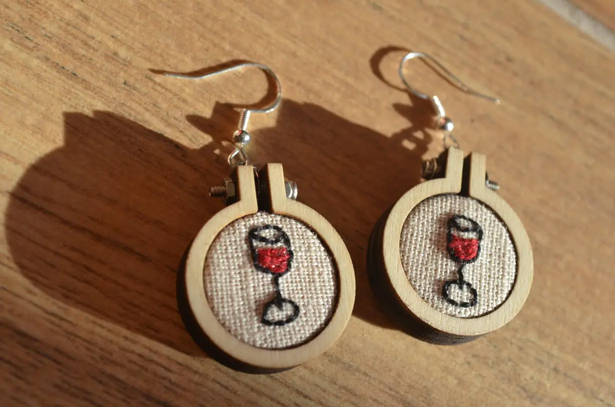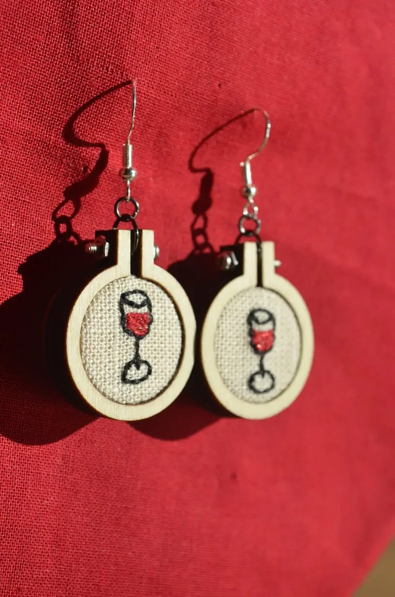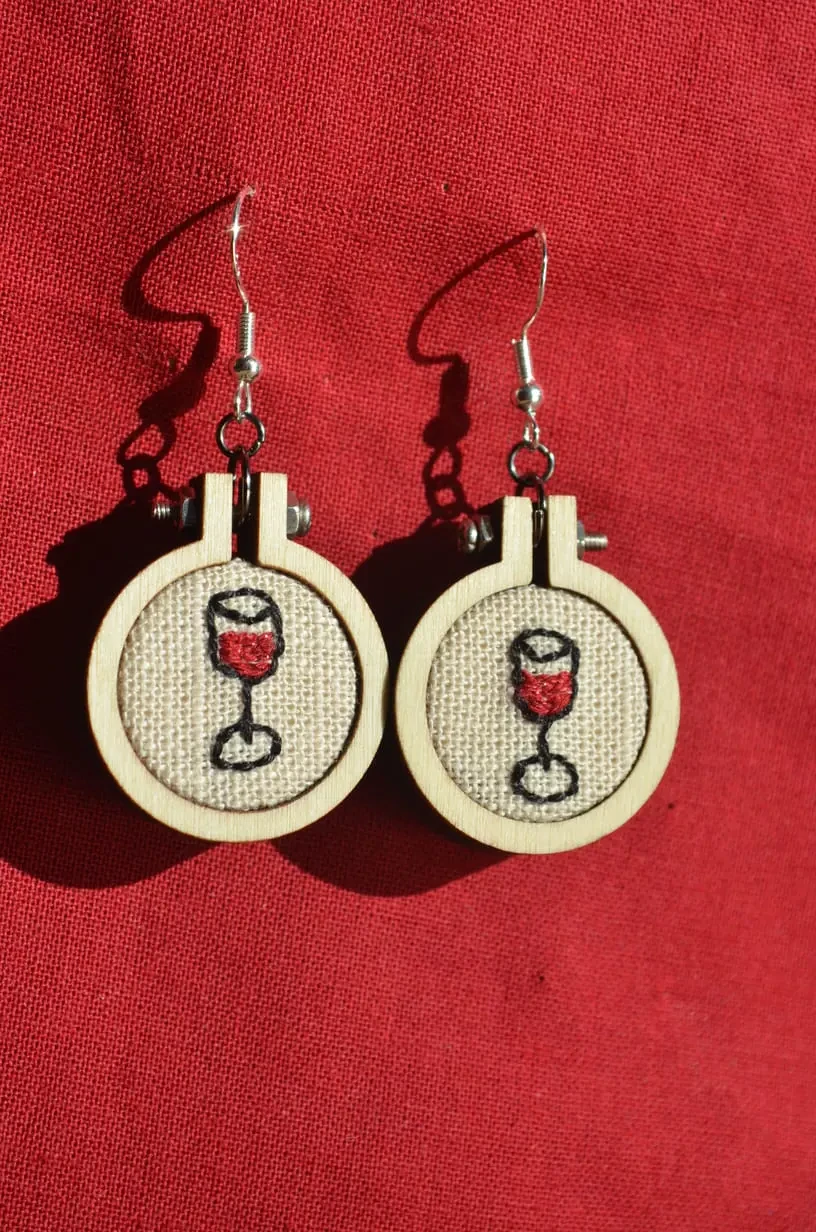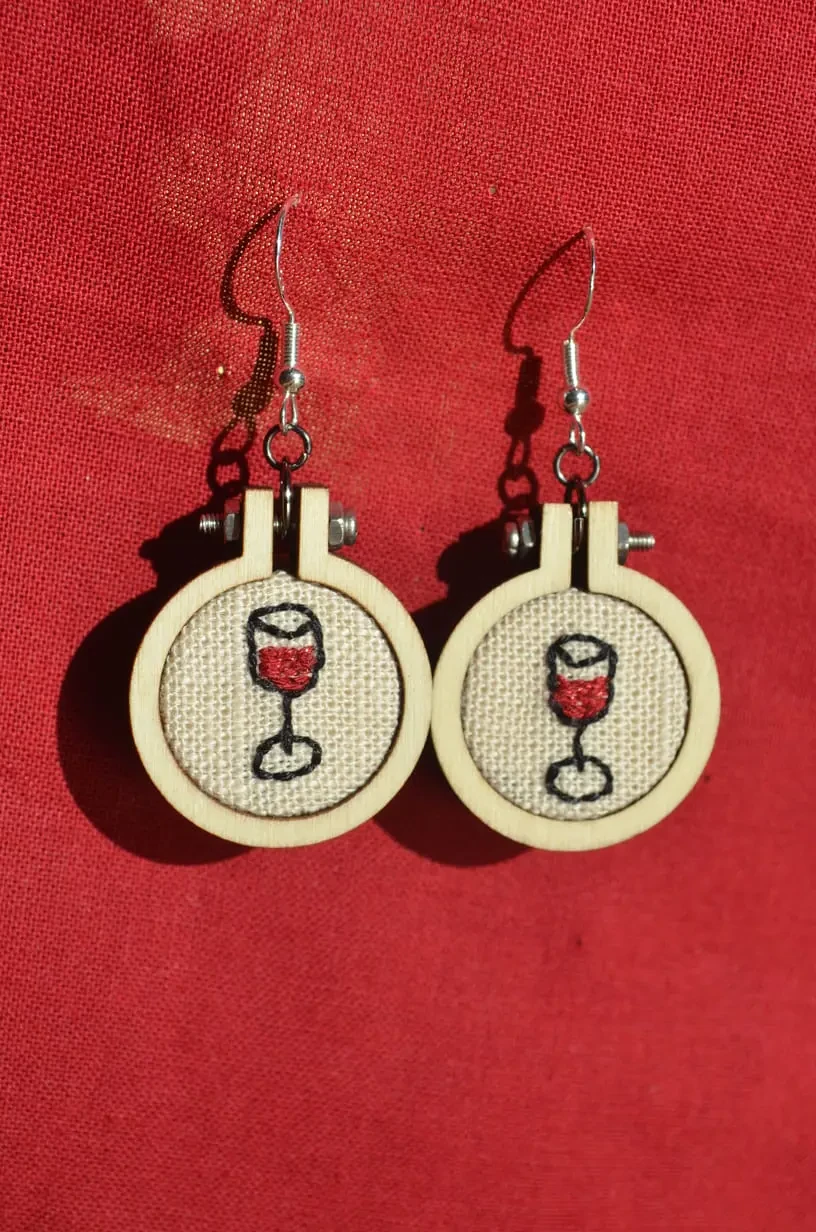 Boucles D’oreilles Broderie à la main « Verre de vin »