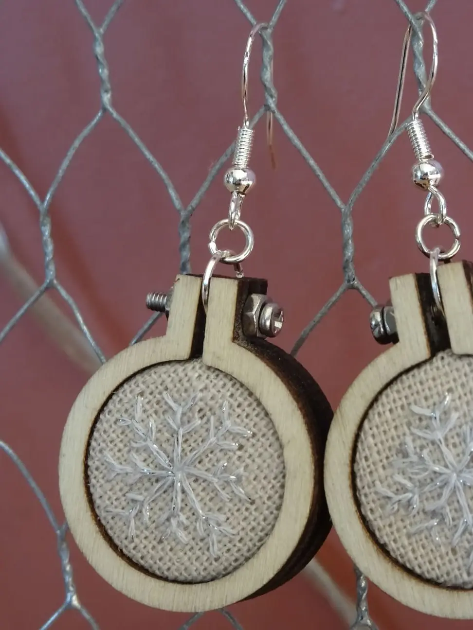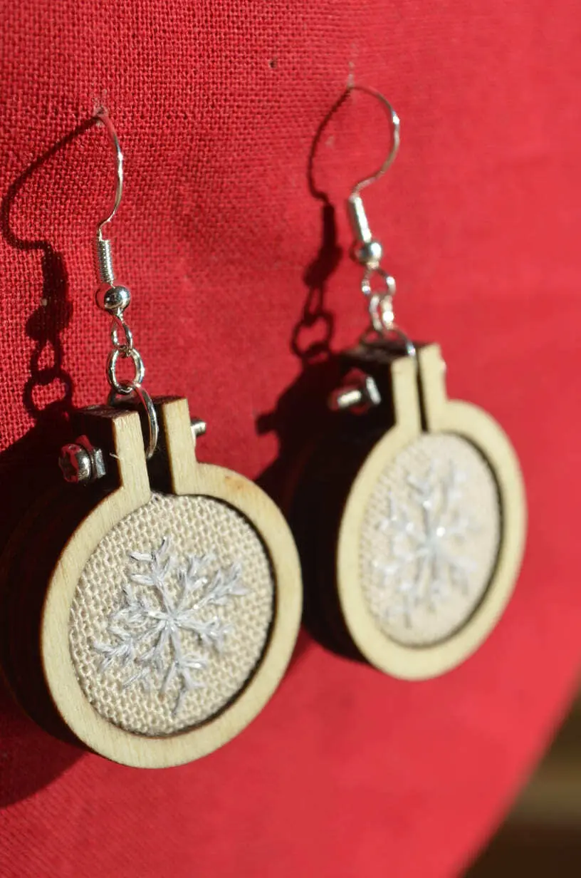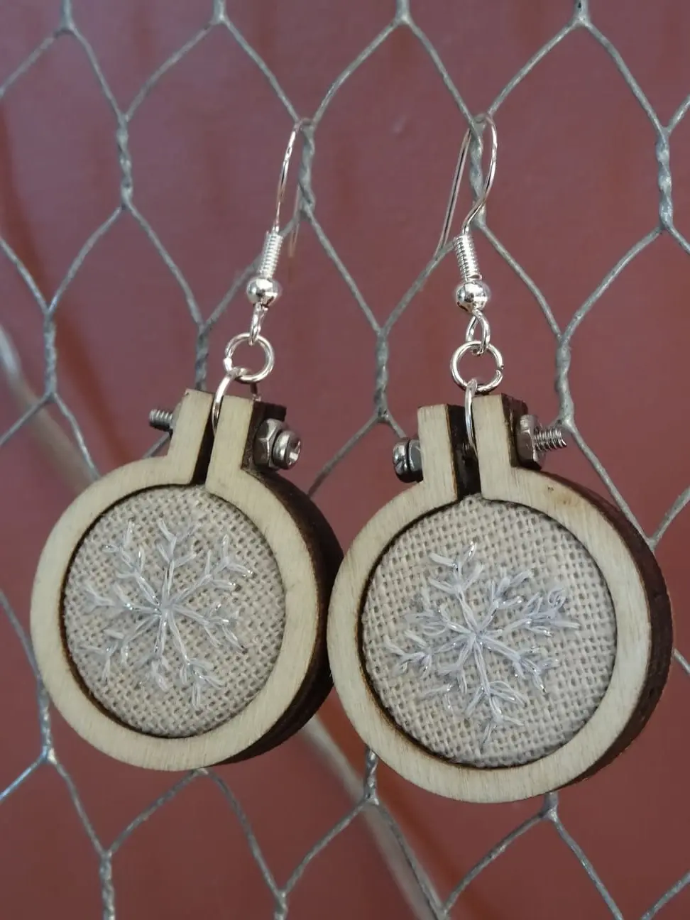 Boucles D’oreilles Uniques Broderie Main « Flocon de neige »