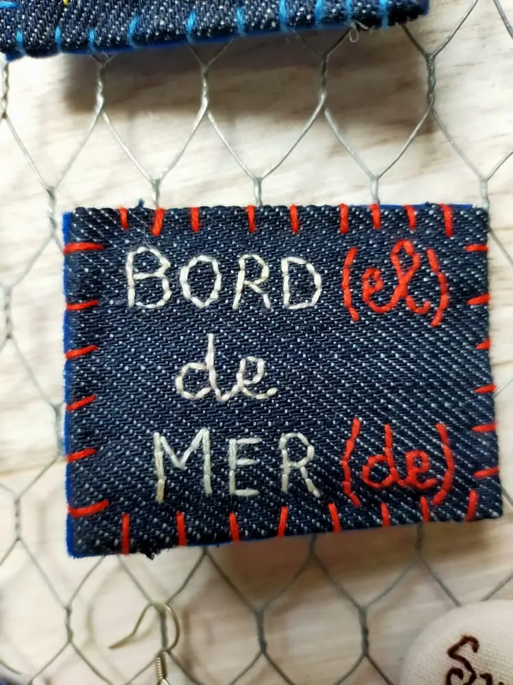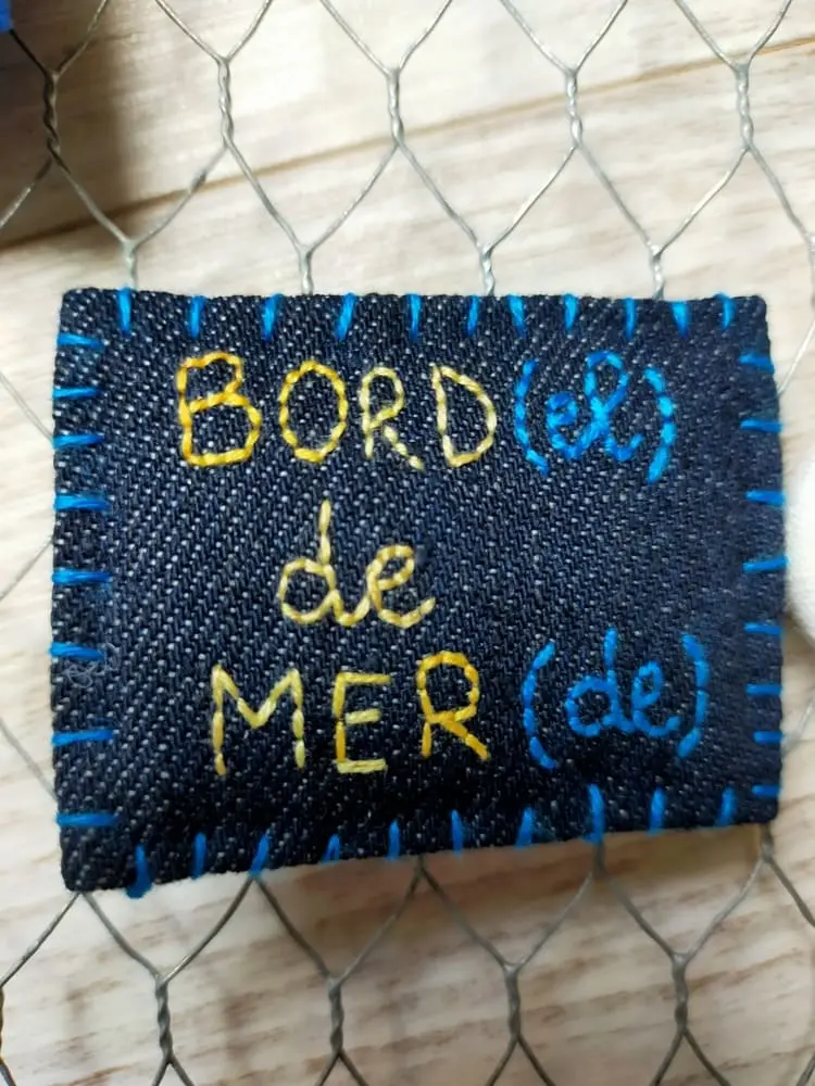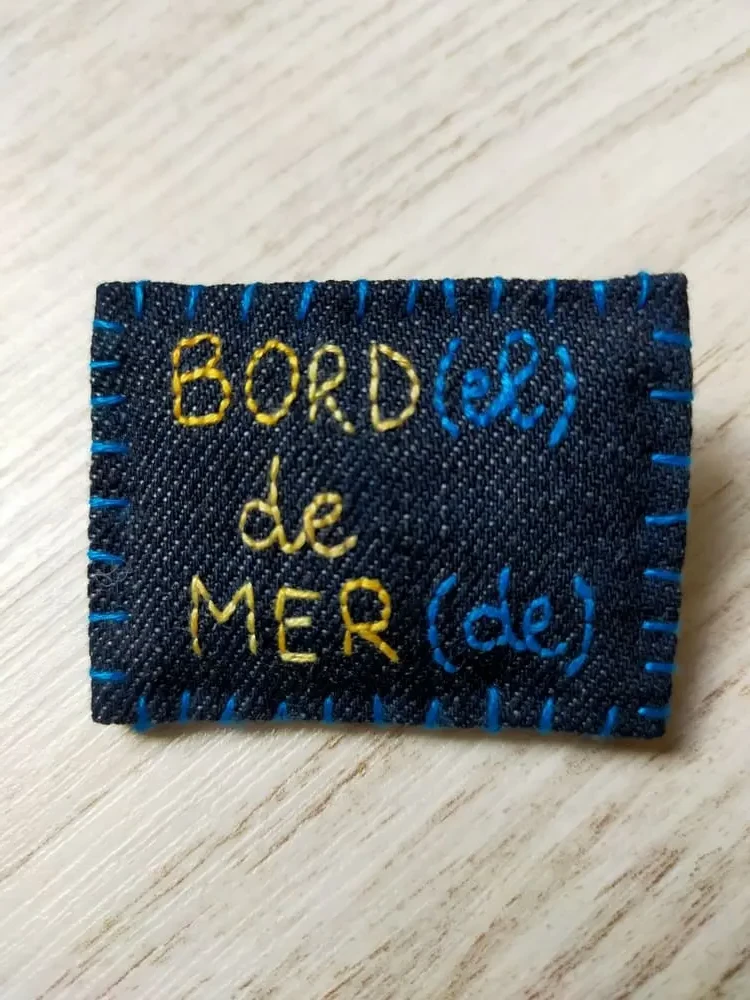 Broche brodée main « Bord(el) de Mer(de) »